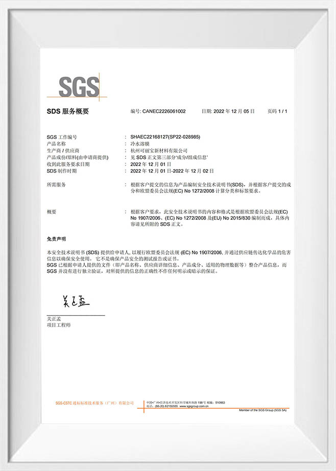 Hotmelt-kleeffolie MSDS-CN